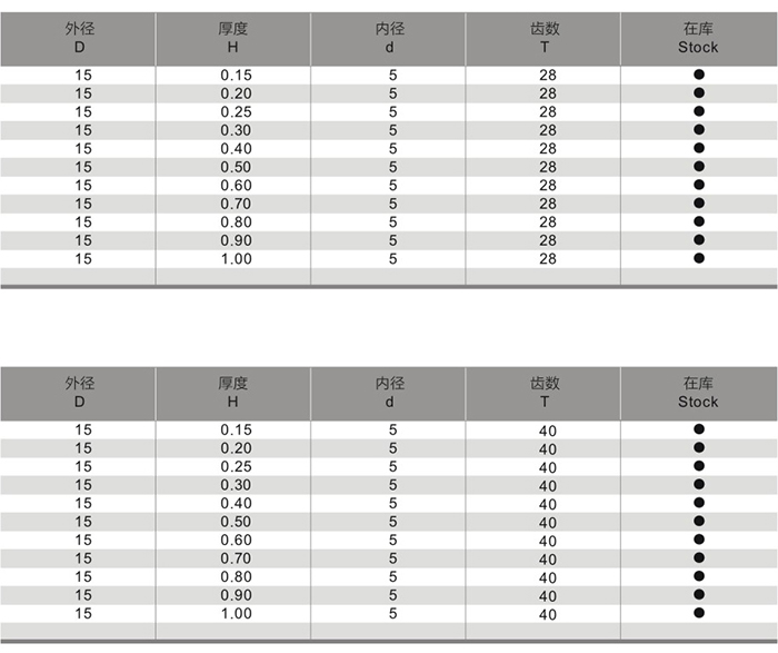粗齒數(shù)(28T)/中齒數(shù)(40T)鋸片